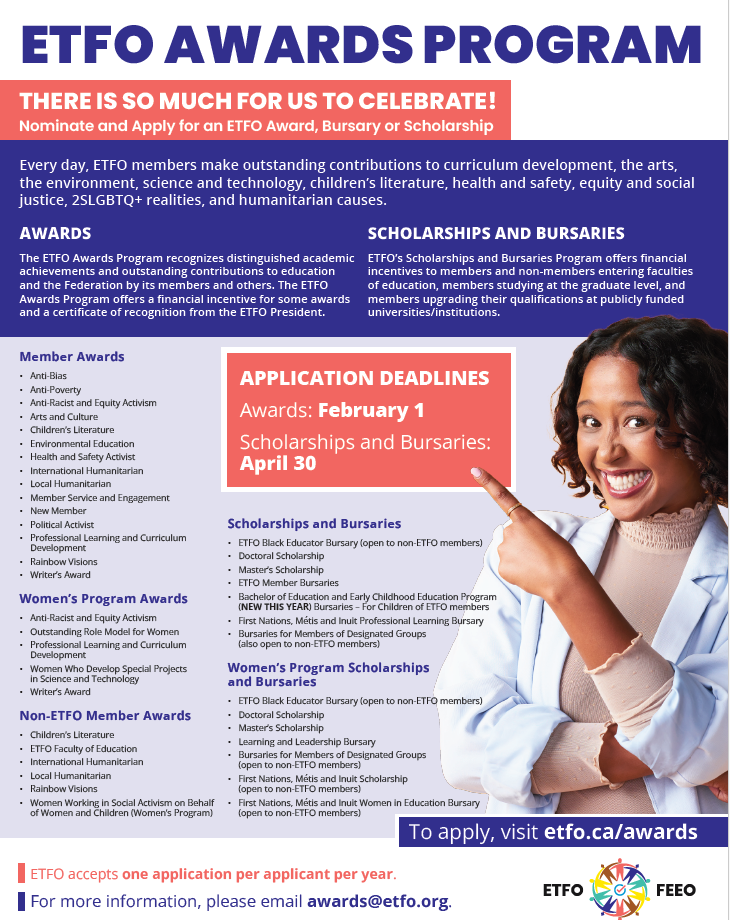 The ETFO-YR Goodwill and Awards Committee is inviting ETFO-YR members (permanent contract teachers) to recognize fellow ETFO-YR members for the Acts of Spreading Goodwill that take place in our schools.